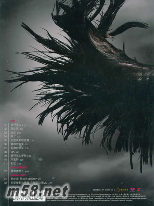 CD 01. 開門見山 02. 黑吃黑 03. 分生 04. 掉了 05. 相愛后動物感傷 06. 靈魂的重量 07. 好膽你就來 08. OK 09. 聽得見的夢想 10. 阿密特 11. 彩虹 BONUS TRACK 12. 夢中作憨人 DVD 01. [黑吃黑] 解禁意識版MV 02. [相愛后動物感傷] 完整禁忌版MV