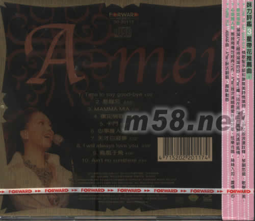 歌聲妹影(m58.net) 10首世紀絕贊經典重現 國臺英粵聲刻畫雋永 妹力評鑒3星帶花推薦曲 TIME TO SAY GOODBYE 情歌圣手鄔??滴涝娗樘钤~,A MEI中文版浪漫詮釋,琴韻悠揚,歌聲絕美. 康定情歌 溜溜A MEI唱得溜溜的好,AMEI繼[站在高崗上]再創民謠新曲情 心事誰人知 蔡振南傳世經典之作,AMEI首次演唱最愛臺語好歌,弦樂合鳴,絲絲入扣,振攝人心. MAMMA MIA ABBA名曲,AMEI鮮活翻唱,趣味動感.