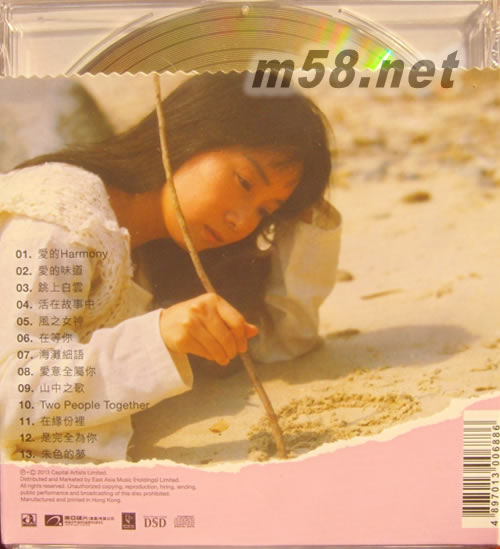 01. 愛的Harmony 02. 愛的味道 03. 跳上白云 04. 活在故事中 05. 風之女神 06. 在等你 07. 海灘細語 08. 愛意全屬你 09. 山中之歌 10. Two People Together 11. 在緣份里 12. 是完全為你 13. 朱色的夢