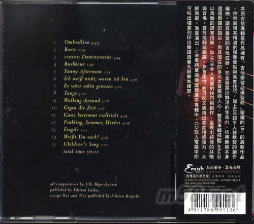 吉它生命(m58.net) 本張吉他專輯是作品擁有「吉他學習必備圣經」榮耀的Ulli 的最新作品。依然展現其精湛的彈奏優點與高度技巧,加上Ulli超乎人器默契的創作編曲,讓其最愛的吉他弦器,完全展露出鮮活的生命力,彷彿樂器本身透過撥彈的指尖,用其潛在的多元本質震撼人心。整張專輯搭配Laika引以為傲的錄音技術,加上Ulli令人激賞的技巧與創作,呈現出絕佳的共鳴與音場,音符或靜或跳躍,多首柔性 曲目卻又表現出高度情感張力,大師風范,激賞演出。Ulli更將單曲樂譜放進本專輯中,CD放入電腦中即可叫出檔案列印出樂譜跟著大師樂本練習。