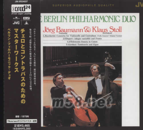 LUIGI BOCCHERINI (1743-1805) 1-3.CONCERTO IN B-FLAT FOR VIOLONCELLO AND CONTRABASS (CELLO CONCERTO ORIGINAL VERSION) JOHANN RUDOLF ZUMSTEEG (1760-1802) 4.ROMANCE FOR VIOLONCELLO AND CONTRABASS JEAN-PIERRE DUPORT(1741-1818) 5-6.ADAGIO CANTABILE AND PRESTO GEOGE PHILIPP TELEMANN(1681-1767) 7-9.SONATA IN CAON IN B-FLAT FOR VIOLONCELLO AND CONTRADASS TOMMASO GIORDANI (1733-1806) 10-11.TAMBOURIN AND GIGUE FOR VIOLONCELLO AND CONTRABASS DOMENICO DRAGONETTI(1763-1846) 12-15.FOUR WALTZ-VIRTUOSI FOR CONTRABASS JEAN-LOUIS DUPORT(1749-1819) 16-17.ARPEGGIO AND ANDANTE