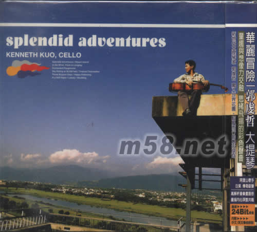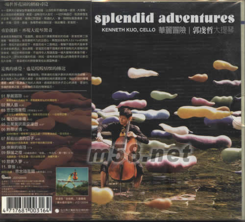 華麗冒險 郭虔哲大提琴(m58.net) 十一歲東方小留學生帶著親友的祝福,以及形影不離的唯一朋友,大提琴,路上陌生的奇異國度\美國.沒有任何人幫忙,一切只有自己,到底會發生什么事?拾起勇氣、攜帶幻想面對,周遭的人、事、特開始驚喜連連!快樂、悲傷、回憶、自省,各種思緒交融紛呈,就此構成-郭虔哲。 勇于創新,再現大提琴 挾著首張專輯即獲「金曲獎」最佳流行演奏獎提名的成績,郭虔哲第二張專輯『華麗冒險』依然展現不凡的企圖心。再度與名制作人 Ed Yen 的默契合作,歷經不斷的琢磨下,終告完成十二首精品。專輯不惜啟用大量樂手于其中搭襯演出,受此激勵,郭虔哲也毫不猶豫的將手指馳向大提琴的極限音域,精彩的琴技焠煉,不由得令人驚嘆真是一場大提琴的美音示范。除此之外,原住民兒童的和音、吶喊,還有來自阿里山的傳奇歌手白紫也加入獻聲 … ,豐富絕妙的聽覺享受在此展露無遺。 是風的感覺,也是暖暖情懷的傳送 以風的概念為主軸,『華麗冒險』想表達的也是大家所共有的情感經驗。深入每個人內心的動人情節,就像歷歷如繪的畫面呈現。時空交錯的種種遭遇,總是一股濃濃不舍的人情味。透過郭虔哲赤子之心的演奏,是變化多端的音樂之旅,也是情懷深處的陣陣暖流。