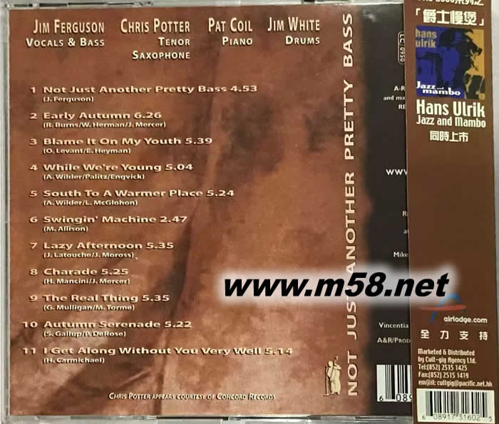 JIM FERGUSON 牛筋大王 NOT JUST ANOTHER PRETTY BASS(m58.net) Made in EC、1999年歐版有ifpi無條碼、荷蘭Challenge唱片公司。音響發(fā)燒迷最喜歡、牛筋味道特別濃郁、牛筋新貴Jim Ferguson新作中兼彈且唱,連同藍(lán)雨傘發(fā)燒琴王柏戈爾及Sax紅人基司樸特散發(fā)驚天動地效果。