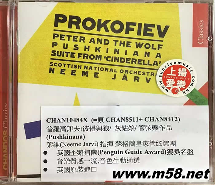 Prokofiev - Peter and the Wolf 普羅高菲夫:彼得與狼/ 灰姑娘/ 管弦樂作品(m58.net) 葉維(Neeme Jarvi) 指揮 蘇格蘭皇家管絃樂團 英國企鵝指南(Penguin Guide Award)獲獎名盤 音樂質感一流;音色生動通透 英國原裝進口