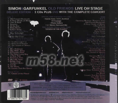 此張便為【Old Friends】演唱會的精華,演唱會中Simon還特別提及兩人相識相惜的過程,并且也邀請到兩人的偶像,第一個以兩人重唱團體型態走紅的艾佛利兄弟合唱團The Everly Brothers擔任演唱會特別嘉賓,更一起演唱『Bye Bye Love』。其他經典暢銷曲也在Paul Simon與Art Garfunkel絲毫不差的表演默契中一一唱出,彷彿這20幾年的空白并不曾發生過一般。