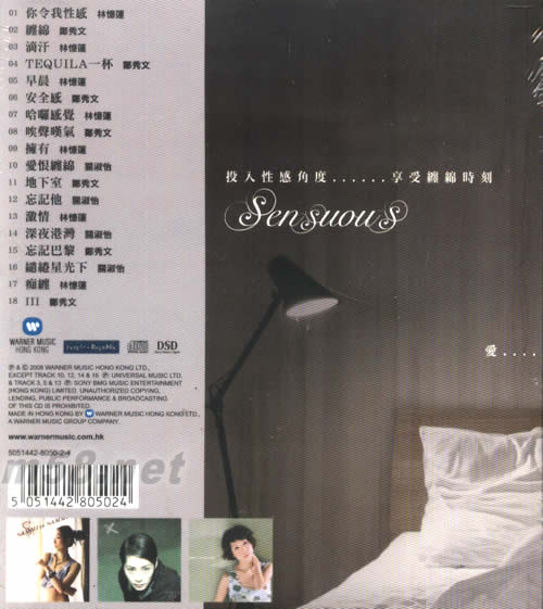 01. 你令我性感 - 林憶蓮 02. 纏綿 - 鄭秀文 03. 滴汗 - 林憶蓮 04. Tequila一杯 - 鄭秀文 05. 早晨 - 林憶蓮 06. 安全感 - 鄭秀文 07. 哈羅感覺(jué) - 林憶蓮 08. 唉聲嘆氣 - 鄭秀文 09. 擁有 - 林憶蓮 10. 愛(ài)恨纏綿 - 關(guān)淑怡 11. 地下室 - 鄭秀文 12. 忘記他 - 關(guān)淑怡 13. 激情 - 林憶蓮 14. 深夜港灣 - 關(guān)淑怡 15. 忘記巴黎 - 鄭秀文 16. 繾綣星光下 - 關(guān)淑怡 17. 癡纏 - 林憶蓮 18. III - 鄭秀文