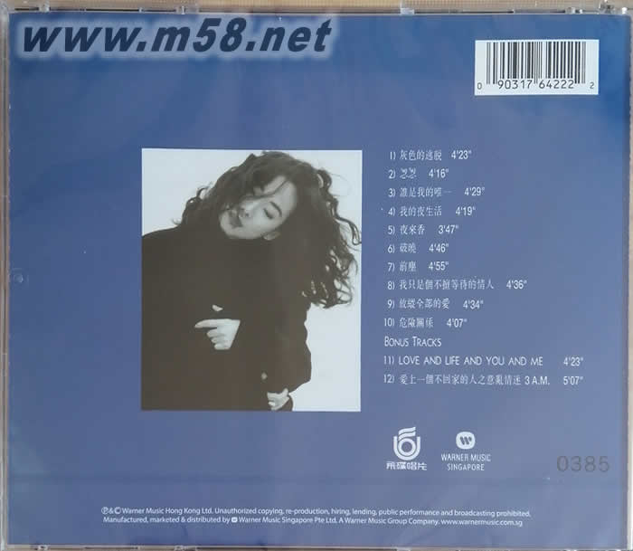 01. 灰色的逃脫 02. 匆匆 03. 誰是我的唯一 04. 我的夜生活 05. 夜來香 06. 破曉 07. 前塵 08. 我只是個(gè)不擅等待的情人 09. 放縱全部的愛 10. 危險(xiǎn)關(guān)系 11. Love And Life And You And Me 12. 愛上一個(gè)不回家的人之意亂情迷3A.M.