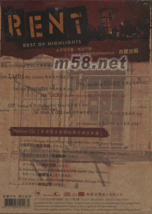 吉屋出租RENT百老匯音樂劇精華特選版專輯背面圖片