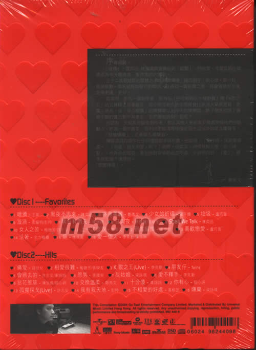 CD 1 01. 暗涌 - 王菲 02. 黑夜不再來 - 陳奕迅 03. 終身美麗 - 鄭秀文 04. 少女的祈禱 - 楊千華 05. 垃圾 - 盧巧音 06. 漩渦 - 黃耀明, 彭羚 07. 明日有明天 - 陳慧嫻 08. 日與夜 - 林憶蓮, 張學友 09. Shall We Talk - 陳奕迅 10. 女人之苦 - 梅艷芳, 許志安 11. 上一次流淚 - 鄭秀文 12. 喜歡戀愛 - 盧巧音 13. 到處留情 - 張信哲 14. 活著 - 余力機構 15. 絕 - 傅佩嘉 16. 愛一個人 - 李克勤, 陳慧琳 CD 2 01. 痛愛 - 容祖兒 02. 相愛很難 - 梅艷芳, 張學友 03. K 歌之王(Live) - 李克勤 04. 朋友仔 - Twins 05. 會過去的 - 許志安, 車婉婉 06. 怨男 - 張國榮 07. 灰姑娘 - 梁詠琪 08. 愛不釋手 - 李克勤 09. 拈花惹草 - 陳慧嫻, 關心妍 10. 交換溫柔 - 鄭秀文 11. 十分傻 - 車婉婉 12. 你有心 - 關心妍 13. 苦中作樂 - 許志安 14. 我有我天地 - 彭羚 15. 不相愛的好處 - 張柏芝 16. 嫌棄 - 梁詠琪