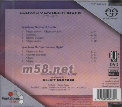 貝多芬第2&5交響曲SACD專輯背面圖片