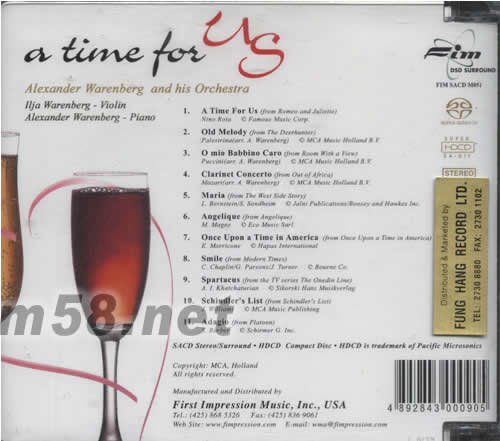 A TIME FOR US 羅密歐與茱麗葉SACD(m58.net) a time for us DSD版,以管弦樂隊形式演繹十一首電影名主題曲,FIM將始錄于97年版本以DSD方式重新制作發行,弦樂音色清晰甜美,旋律熟悉,悅耳動聽,音場遼闊深遠,氣氛迷人。 羅密歐與茱麗葉的悲劇,在批評家眼中雖未必是莎士比亞作品中最卓越的,但卻是讀者和觀眾印象中最熟悉的一部作品,曾多次被搬上銀幕,如1954年意大利導演卡斯特拉尼(Renato Castellani)拍的曾獲威尼斯影展最佳影片獎的《羅密歐與茱麗葉》、1966年英國出品的古典芭蕾舞劇、1984年的《現代殉情記》,1996年萊昂納多.迪卡普里奧主演的后現代版《羅密歐與茱麗葉》等,但以這部1968年英國出品、由意大利導演佛朗哥.澤菲雷里(Franco Zeffirelli)拍攝的這部評價《殉情記》整體評價最高。影片描述兩大敵對的家族,彼此的兒女羅密歐與茱莉葉卻陰差陽錯互相愛慕,最后,男女主角的愛情不敵命運的作弄…… 本片的最大特色,是沒有采用當時的大牌影星演出,而是由兩位貼合角色身份的新進年輕演員:17歲的奧利維亞.赫西(Olivia Hussey)以及18歲的倫納德.惠廷(Leonard Whiting) 來詮釋莎翁筆下最命運多舛的情侶,因此為這一部古典電影灌注入年輕的生命。此片除劇情發展引人入勝以外,它在小細節上也很精心考究:當兩家世仇展開決斗時,從粗暴的弄刀舞劍,變成了真實而致命的交戰;還有兩人第一次邂逅的那場華麗舞會,也呈現出意大利鄉間豐富的色彩、與奢華的氣勢。 主題曲“A Time For Us---總有一天”是在片中的舞會上演唱的,配合了男女主人翁的首次見面,暗示了他們之間的愛情命途多舛。此曲由拉里.庫西克(Larry Kusik)和埃迪.斯奈德(Eddie Snyder)作詞,被稱為“意大利音樂教父”的尼諾.羅塔(Nino Rota)作曲,他以意大利民謠和不易屈服的民風為基礎,從清幽沉靜的前奏層層漸進地推到慷慨激昂的高潮,甚富戲劇張力。當聽到這首歌曲時,相信不少人都會緬懷著自己的青春。