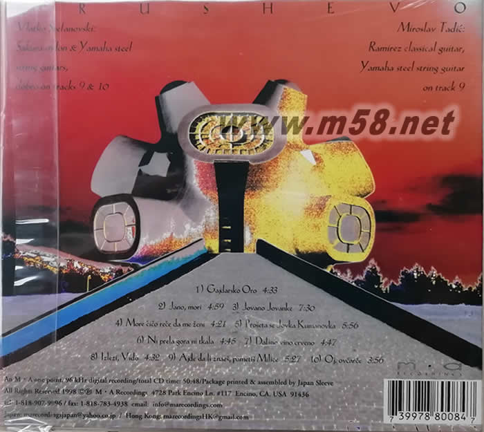 MA 負責人 Todd 認識二位吉他圣手,一位是在馬其頓呼風喚雨 Vlatko Stefanovski,一位是南斯拉夫樂壇上倍受推崇的 Miroslav Tadic,把兩人集合起來出專輯,讓不少吉他樂迷大飽耳福。二把吉他唱和默契佳,演奏技巧更是一把罩,我對面的編輯同仁洪瑞鋒說:「回家把燈關掉,好好聽這張專輯,真的是太享受了……」--313 期音響論壇 資深編輯周靖庭
