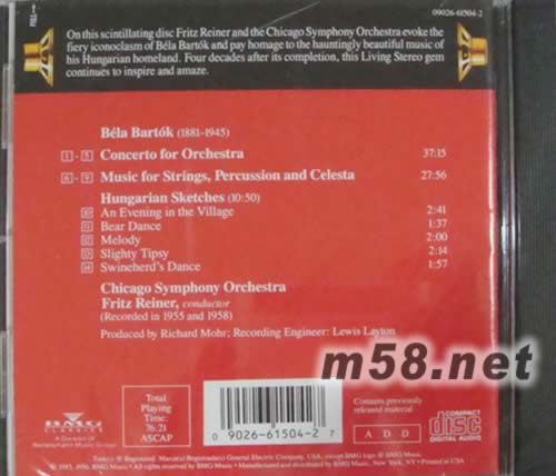 Bela Bartok(1881-1945) 1-5 concerto for orhcestra 6-9 music for strings,percussion and celesta Hungarian sketches 10 an evening in the village 11 bear dance 12 melody 13 slighty tipsy Chicago symphony orchestra fritz reiner ,conductor (recorded in 1955an 1958)