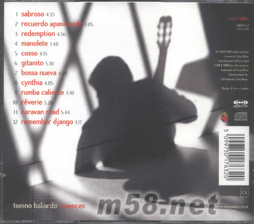 ESSENCES(吉它吉普賽)(m58.net) TONINO BALIARDO是大名赫赫的GIPSY KINGS吉它樂隊的主吉它手。 GIPSY KINGS(吉普賽國王)作為一個吉普賽樂團,他們的六個帥小伙成員的關系,其實都是同胞,其中三個是一個媽生的,與其他三個是一個祖母的堂兄弟的關系,總之——都不是外邊的!兄弟六人到處游歷,參加婚禮、節日和街道上的演出。由于他們的生活方式和吉普賽人很相似,因此樂團命名為Gipsy Kings——這支樂團從1979年在法國南部小城組建,而且曲風中他們的傳統歌曲中添加一些中東、拉丁美洲、北非和一些搖滾的佐料,一種全新多變、非常打動人的Flamenco音樂產生了。 這幾個年輕人,一個拿著一把吉它,在世界各地到處“流浪”,他們享受流浪的過程,卻也一不留神在法國火了一把,在英國和美國也極受歡迎。 Tonino Baliardo作為吉普賽國王的“王中王”主吉它手,他懷中的吉它仿佛有了生命般也流著吉普賽的血液:熱情、奔放為主、有時又溫柔似水。激情處有時會加點人的齊喝、擊掌聲。本輯《ESSENCES》譯為“本質”,除了指法、錄音沒的挑剔以外,曲風亦很有特色,體現了吉普賽民族的開放性:就是吸納其它風格后,自成一派,體現了吉普賽吉它的“本質”。