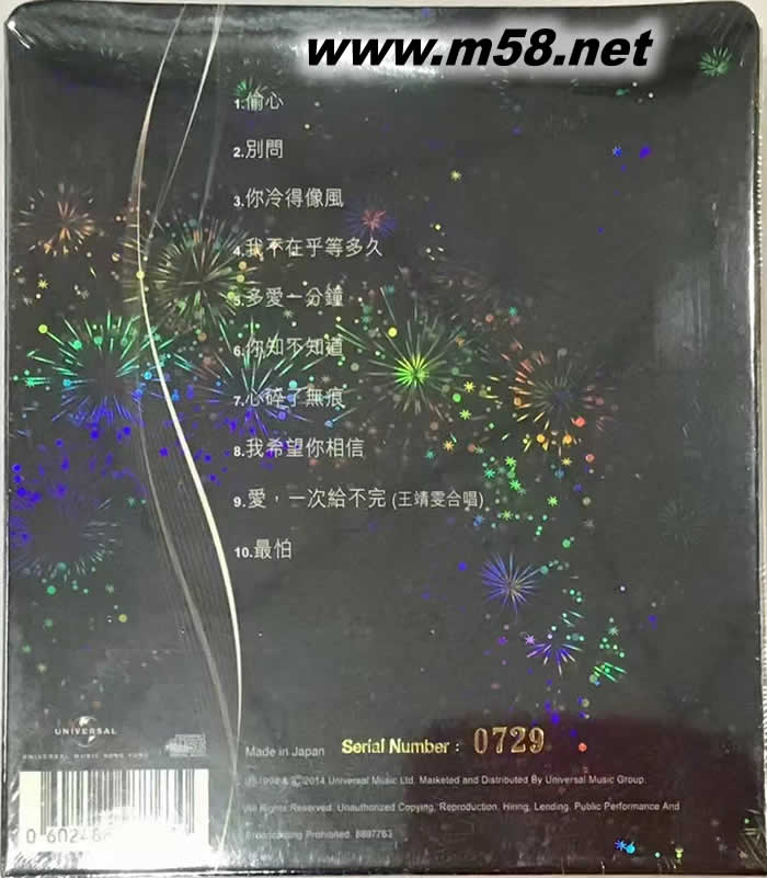 偷心 (國語)20周年 24K GOLD 黑色封面(m58.net) 2014年11月7日,「環球音樂」將會發行「週年系列」24K Gold CD的「壓軸篇」,這是從2009年開始出版至今的第九輪出品共10款。環顧過去的五年間,以日本壓碟的24K金碟「週年系列」,廣泛獲得樂迷及發燒友們的歡迎。壓軸的第九輪新品同樣屬於傾向「高質素」的製作,限量編號1000張,絕不加印!