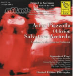 阿卡多與意大利樂團 - 皮亞佐拉探戈作品Oblivion 180g 33RPM LP 黑膠(m58.net) 出生於阿根廷的探戈天王皮亞佐拉(Astor Piazzolla)雙親是意大利人,他的童年時代在美國紐約渡過,他在這里學習到西班牙文、法文及意大利文,這文化背景影響他后來在文化藝術的創(chuàng)作致深。另一探戈天王加戴爾(Carlos Gardel)對他十分賞識,視他為音樂天才。皮亞佐拉於1953因作曲比賽中得獎,其中一項獎品是到巴黎深造,他跟隨當時法國最著名作曲家布朗熱(Nadia Boulanger)學習作曲,自此便改變他的余生。探戈舞及其音樂是阿根廷的文化圖像,皮亞佐拉曾創(chuàng)作不少同類音樂但並未能如他在歐美等地得到的重視,但自他於1992年過身之后,他的音樂才得國人日漸的認同。意大利小提琴一代宗師阿卡多(Salvatore Accardo)擁有超然的樂壇地位,出神入化的琴技往往令人聽得熱血沸騰渾身充滿動感,仿如人琴合一般的演奏絕對無人能及,技術銳不可擋。阿卡多配合"意大利室樂團(Orchestra da Camera Italiana)"於2001年5月的珍貴錄音記錄,帶來皮亞佐拉的精選作品包括[遺忘(Oblivion)]、[角鯊(Escualo)]、[天使的歌謠(Milonga en RE)]、[天使之路(Introduction al angel)]和[天使之舞(Milonga del Angel)]等,現以33 1/3轉180克以處女膠為載體的黑膠盤呈獻,后期全在德國製造,全球限量 496套,極之珍貴, 請火速行動!