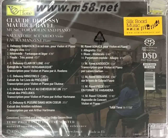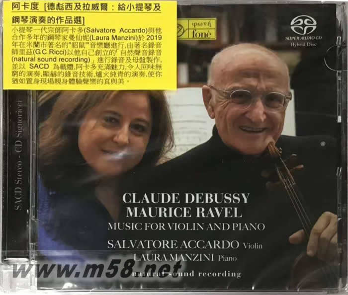 德彪西 拉威爾 小提琴與鋼琴[Claude Debussy - Maurie Ravel : Music for Violin And Piano] SACD(m58.net) Salvatore Accardo (小提琴) Laura Manzini (鋼琴) 1. 意大利小提琴一代宗師阿卡多(Salvatore Accardo)公認擁有超凡卓越的琴技,仿如人琴合一般的演奏,猶似行云流水,變化多端,使人著迷。