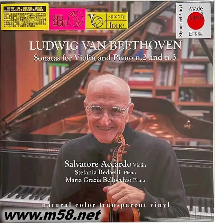 貝多芬給小提琴及鋼琴的第二及三奏鳴曲 BEETHOVEN SONATAS FOR VIOLIN AND IPANO N.2 AND N.3 黑膠 透明膠日本版(m58.net) Salvatore Accardo (小提琴) LAURA GORNA 小提琴 MARIA GRAZIA BELLOCCHIO (鋼琴) 阿卡多《普羅科菲耶夫小提琴奏鳴曲》LP阿卡多與其愛(ài)徒古納共同演繹普羅科菲耶夫不朽經(jīng)典雙小提琴奏鳴曲,與貝洛奇奧合作因目睹戰(zhàn)爭(zhēng)帶來(lái)的殘酷和撕裂感覺(jué)而創(chuàng)作,曲調(diào)陰暗艱澀的第一奏鳴曲。全球限量496張,180克超自然色透明膠唱片,日本壓制!