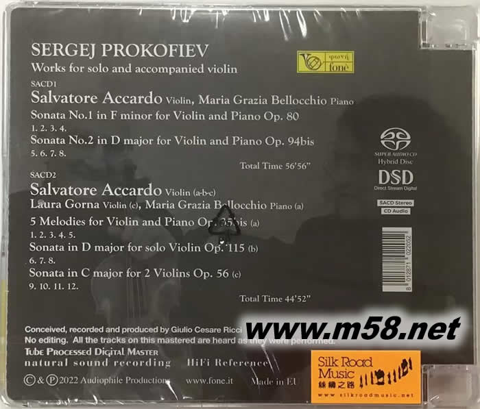 普羅科菲耶夫 為小提琴和鋼琴演奏而作的五條旋律,作品編號35 及“D大調第二小提琴奏鳴曲,作品編號94 Prokofiev 5 Melodies for Violin and Piano Op. 35 SACD專輯背面圖片