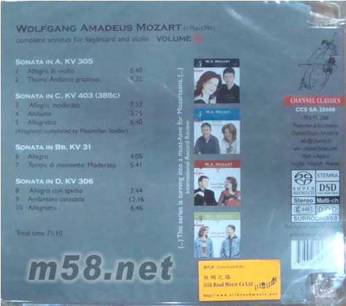 莫扎特小提琴與鋼琴奏鳴曲第五輯SACD專輯背面圖片