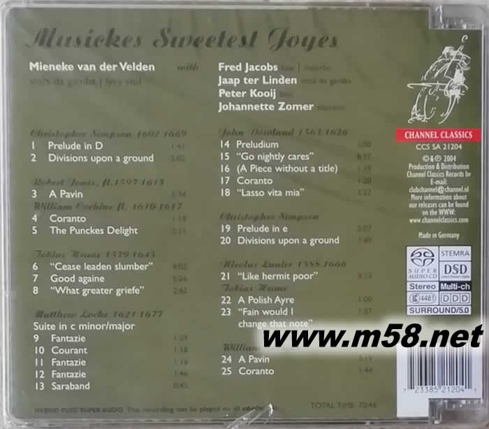 大提琴下的道蘭德與洛克 MUSICKES SWEETEST JOYES SACD專輯背面圖片