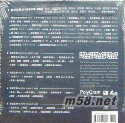 寶記正傳(m58.net) 麗金 (Polygram),香港流行音樂(lè)史上一個(gè)至重要的品牌,曾孕育多位樂(lè)壇巨星,如譚詠麟、陳慧嫻、關(guān)淑怡、李克勤、鍾鎮(zhèn)濤、陳慧嫻、關(guān)淑怡、王馨平、泰迪羅賓、陳曉東、彭健新、區(qū)瑞強(qiáng)、露云娜等頂尖的歌手也在高峰時(shí)期為寶麗金效力。另外,樂(lè)隊(duì)組合溫拿樂(lè)隊(duì)、「寶麗金三小花」之劉小慧和湯寶如也在不同時(shí)期為寶麗金旗下的藝人歌手。 2013年,寶麗金重開(kāi),入行30周年的陳慧嫻也重新加盟,8月28日她將與前寶麗金歌手于香港會(huì)議展覽中心舉行《寶麗金Forever Live演唱會(huì)》。為慶祝寶麗金重生,群星重唱他們的首本名曲,錄成由35首金曲編成、長(zhǎng)達(dá)18分鐘的medley「寶記正傳」Forever Mix。《寶記正傳》另加收Classic Mix、Shalala Mix、Miss U Mix、Finale Mix四首medley,重燃樂(lè)壇的光芒,為歌迷們尋回美好真摯的回憶。CD日本壓碟,每張印有獨(dú)立編號(hào)。