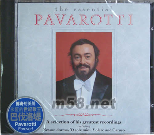 THE ESSENTIAL 精選 心中的太陽(m58.net) 帕華洛帝精華名作I Essential Pavarotti – A Selection Of His Greatest Recordings 如果竟然還有人尚未擁有的帕華洛帝的"Caruso",可不要再錯過這張CD了!此輯不但選錄了這位當今最偉大男高音的這首流行抒情金曲,多首膾炙人口的歌劇選曲均同時收錄其中,稱得上是最豐富的精選輯。錄音年代橫跨1977到"88年,為帕華洛帝的演唱生涯留下最忠實的記錄。