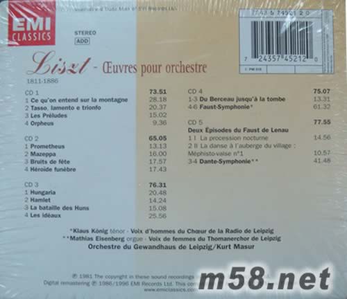 李斯特:管絃樂作品集LISZT EUVRES POUR ORCHESTRE 5CD套裝(m58.net)