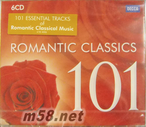 Romantic Classics 101浪漫古典名曲 101古典系列6CD套裝(m58.net) 這里收錄了101首最能讓人油然而生戀愛感覺的浪漫旋律。雖然說,古典音樂中有所謂的「浪漫樂派」,這種美學(xué)歌頌人類崇高情操和對於個(gè)人極致表現(xiàn)的追求,並將音樂從原本古典時(shí)代的娛樂副產(chǎn)品轉(zhuǎn)為關(guān)注內(nèi)在的感情表達(dá)的藝術(shù)創(chuàng)作。但這份合輯標(biāo)題所指的「浪漫」,卻是那種與愛情有關(guān)的浪漫,而選曲的方向,也是以收錄這些與愛情甜蜜繾綣相關(guān)的戀愛古典音樂,例如柴可夫斯基為「羅密歐與茱莉葉」所寫的交響詩、最能勾起人談戀愛神魂顛倒感的拉赫曼尼諾夫第二號鋼琴協(xié)奏曲、被用在電影《似曾相識》中作為配樂的「帕格尼尼主題狂想曲」的第十八段變奏。此外還有泰伊思暝想曲、夢幻曲、愛之夢、為了藝術(shù),為了愛、美麗的夜晚,愛情的夜晚、輕喚我心、一滴美妙的情淚、愛情是一只難以馴服的小鳥等,無一不是與愛情有關(guān)的曼妙作品。 本片中的演奏家,都是赫赫有名的世界樂壇頂尖人物,包括長笛家班奈特、吉他家拉戈雅、鋼琴家魯普、新世代小提琴美少女吉妮‧楊森、俄國鋼琴大師阿胥肯納吉、奧地利指揮大師卡拉揚(yáng)、古巴鋼琴大師波雷、三大男高音帕華洛帝、卡列拉斯、多明哥、男中音特菲爾、女高音卡娜娃、蘇莎蘭、波普、阿藍(lán)尼亞、畢約林、貝岡濟(jì)、提芭蒂、史提法諾等人。這整套錄音共收錄了長達(dá)七個(gè)多小時(shí),最優(yōu)美浪漫的愛情古典,可以說是煞費(fèi)苦心收集和選曲挑選的完美戀愛經(jīng)典音樂。