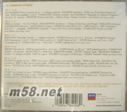 Romantic Classics 101浪漫古典名曲 101古典系列6CD套裝專輯背面圖片