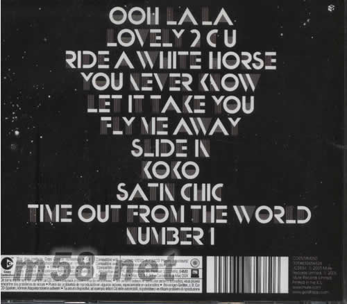 01. Ohh La La 02. Lovely 2 c u 03. Ride a white hourse 04. you never know 05. let it take you 06. fly me away 07. slide in 08. koko 09. satin chic 10. time out form the world 11. number 1