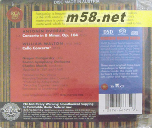DVORAK & WALTON CELLO CONCERTOS PIATIGO RSKY /MUNCH德沃夏克:大提琴協(xié)奏曲(Living Stereo SACD特惠)專輯背面圖片