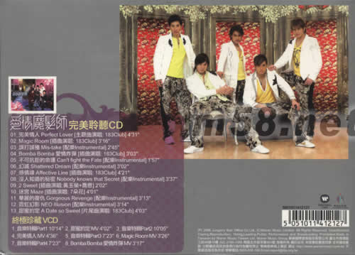 01 完美情人 Perfect Lover (主題曲/演唱183CLUB) 02 Magic Room (插曲/演唱183CLUB) 03 誤打誤撞 Mis-take (配樂) 04 Bomba Bomba (插曲/演唱183CLUB) 05 不可抗拒的命運 Can't Fight the Fate (配樂) 06 幻滅 Shattered Dream (配樂) 07 感情線 Affective Line (插曲/演唱183CLUB) 08 沒人知道的秘密 Nobody knows that Secret (配樂) 09 2 Sweet (插曲/演唱 黃玉榮+喬恩) 10 迷宮 Maze (插曲/演唱 7朵花) 11 華麗的復仇 Gorgeous Revenge (配樂) 12 霓虹幻影 NEO Illusion (配樂) 13 甜蜜約定 A Date so sweet (片尾曲/演唱 183CLUB) 終極珍藏VCD 1 音樂特輯PART1 2 甜蜜約定 MV 3 音樂特輯PART2 4 完美情人 MV 5 音樂特輯 PART3 6 MAGIC ROOM MV 7 音樂特輯 PART4 8 BOMBA BOMBA愛情炸彈 MV