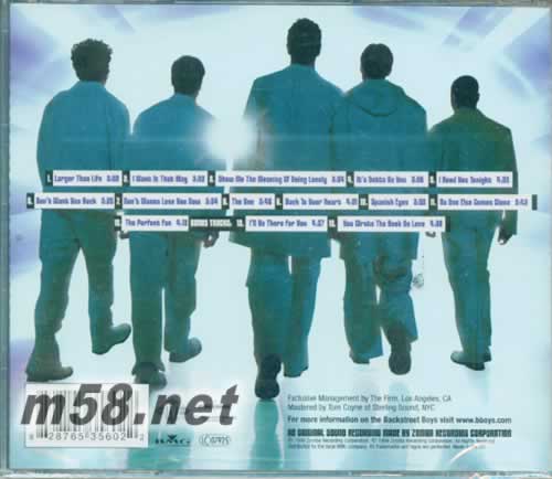 1. Larger Than Life 2. I Want It That Way 3. Show Me the Meaning of Being Lonely 4. It's Gotta Be You 5. I Need You Tonight 6. Don't Want You Back 7. Don't Wanna Lose You Now 8. One 9. Back to Your Heart 10. Spanish Eyes 11. No One Else Comes Close 12. Perfect Fan