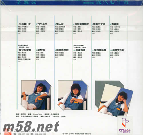 01. 小妹妹日記 02. 今生來世 03. 情人淚 04. 我是癡情無限 05. 害羞的女孩 06. 青春夢 07. 愛火心中熨 08. 靜悄悄 09. 無事也想你 10. 幸運指環(huán) 11. 愛的擦紙膠 12. 真情雙手獻