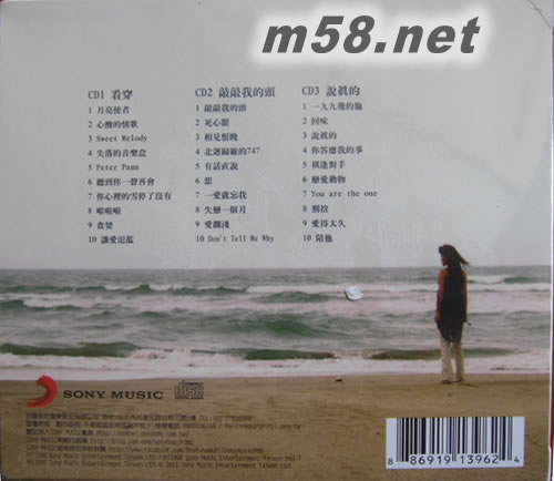 DISK 1 CD 1. 月亮使者 2. 心酸的情歌 3. Sweet Melody 4. 失落的音樂盒 5. Peter Pann 6. 聽到你一聲再會 7. 你心里的雪停了沒有 8. 啦啦啦 9. 貪婪 10. 讓愛氾濫 DISK 2 CD 1. 敲敲我的頭 2. 死心眼 3. 相見恨晚 4. 北迴歸線的747 5. 有話直說 6. 想 7. 一愛就忘我 8. 失戀一個月 9. 愛擱淺 10. Don’t Tell Me Why DISK 3 CD 1. 一九九幾的他 2. 回味 3. 說真的 4. 你答應我的事 5. 棋逢對手 6. 戀愛動物 7. You are the one 8. 割捨 9. 愛得太久 10. 陪他