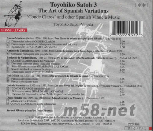 01 Diferencias sobre el CONDE CLAROS 02 Fantasia que contrahaze la harpa en la manera de Ludovico 03 Romanesca:CUARDAME LAS VACAS 04 Romance:Para quien crie yo cabellos 05 CONDE CLAROS(para dos Vihuelas) 06 Discantar sobre un punto(para dos Vihuelas) 07 Siete diferencias sobre GUARDAME LAS VACAS 08 Soneto lombardo a manera de danca 09 Diferencias sobre CONDE CLAROS 10 Fantasia del octavo tono 11 Fantasia del quarto tono 12 CONDE CLAROS con diferencias 13 Diferencias sobre GUARDAME LAS VACAS 14 Cancion del Emerador;sobre'Mille Regretz'de Josquin des Prez 15 Villanesca:La Cortesfa 16 CONDE CLAROS con cierta diferencias