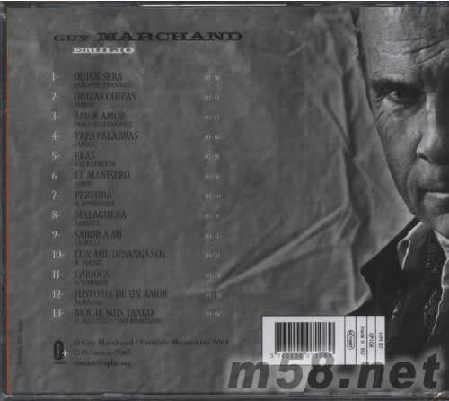 價格為估,以實到貨為準! EMILIO西班牙情歌(m58.net) 來自歐陸最有型、最感性的男聲 原版西班牙文深情演繹13首,包括《我的心里只有你沒有她》(第12首)、電影《花樣年花》插曲(QUIZAS,QUIZAS》、阿根廷探戈大師皮亞佐拉名曲《TANGO》,《PERFIDIA》之浪漫經典 法國原裝進口