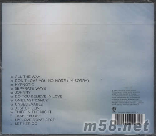 01. ALL THE WAY 02. DON'T LOVE YOU NO MORE (I'M SORRY) 03. HYPNOTIC 04. SEPARATE WAYS 05. JOHNNY 06. DO YOU BELIEVE IN LOVE 07. ONE LAST DANCE 08. UNBELIEVABLE 09. JUST CHILLIN' 10. THIEF IN THE NIGHT 11. TAKE'EM OFF 12. MY LOVE DON'T STOP 13. LET HER GO