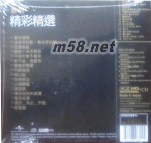 精彩精選 (K2HD) (日本獨(dú)家發(fā)行版)(m58.net) 同時(shí)出版的有: 1、黎明 精彩精選 K2HD 日本獨(dú)家發(fā)行限量版 2、張學(xué)友THE BEST OF JACKY CHEUNG K2HD 日本獨(dú)家發(fā)行限量版 3、鄧麗君 償還 K2HD 日本獨(dú)家發(fā)行限量版 4、陳慧嫻 你身邊永是我 日本獨(dú)家發(fā)行限量版 K2HD 5、軟硬天師 廣播道軟硬殺人事件 K2HD 日本獨(dú)家發(fā)行限量版 6、王菲 最精彩的演唱會(huì) 94/95 K2HD 日本獨(dú)家發(fā)行限量版 7、關(guān)淑怡 The Story of Shirley 日本獨(dú)家發(fā)行限量版 K2HD 8、張國(guó)榮 陪你倒數(shù) 日本獨(dú)家發(fā)行版 K2HD 限量版