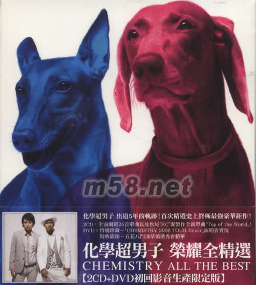 化學(xué)超男子 榮耀全精選(m58.net) 化學(xué)超男子出道5年之間的點滴軌跡!終于發(fā)行! 2001年,在歷經(jīng)長達(dá)1年半的電視節(jié)目選秀會,從多達(dá)1萬9千名的競爭者中,有二位佼佼者通過層層考驗脫穎而出,他們就是川田要+堂珍嘉邦=化學(xué)超男子! 首張單曲[夢的碎片]為日本樂壇投下震撼彈,化學(xué)超男子沖擊般的出道在日本與臺灣一并寫下令人驚異的銷售話題記錄!除了身為歌手,出道五年來化學(xué)超男子也不斷與各個不同舞臺世界最頂尖優(yōu)秀的藝人/藝術(shù)家合作,所帶來的影響及邊際效應(yīng)無人不曉! 終于,在出道5年后,化學(xué)超男子要將他們一路走來所寫下的歷史做一總整理,除了回顧更要展望未來!初回生產(chǎn)限定盤以2CD+DVD的方式發(fā)行,2CD中不但將他們出道至今的所有單曲完全網(wǎng)羅收錄外,還多加當(dāng)年一手打造他們的恩師-日本金牌制作人--松尾"KC"潔為化學(xué)超男子所量身訂作的新曲[Top of the World]!雙CD總共26首曲目外,DVD更是超值豪華地收錄--[CHEMISTRY 2006 TOUR fo(u)r]的演唱會完整實況,以及所有歌迷最夢寐以求、當(dāng)年五花八門淺草橋選秀會的精華! 出道五年,化學(xué)超男子不斷蛻變,他們的成長和努力在歌迷的關(guān)愛下一步一個腳印地寫下屬于自已的輝煌紀(jì)錄!現(xiàn)就,就請和化學(xué)超男子一起,聆聽他們無懈可擊的歌聲,享受所有最值得紀(jì)念的精彩畫面!