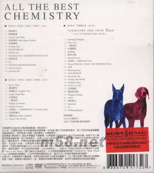 CD.(2001-2003) 1. 夢的碎片 2. 夢想起飛 3. You Go Your Way 4. 找尋著妳~New Jersey United~ 5. 化學(xué)漂流 6. It Takes Two 7. SOLID DREAM 8. MOVE ON 9. My Gift to You / CHEMISTRY meets S.O.S. 10. 回到未來 11. Us 12. YOUR NAME NEVER GONE 13. Now or Never 14. You Got Me CD.(2004-2006) 1. So in Vain 2. 藍(lán)色夢幻 3. 珍愛的人 (Single Ver.) 4. Long Long Way 5. 白色氣息 6. 一路有你 7. Wings of Words 8. almost in love 9. 合而為一 / CHEMISTRY X Crystal Kay 10. 約定的地方 11. 遠(yuǎn)影 feat. John Legend 12. Top of the World DVD 1. Opening Prologue 2. Here I am 3. 一路有你 4. 太過愛你 5. nothing 6. 淚水之后 7. almost in love 8. 合而為一 (2006.04.22 Ver.) 9. Dance With Me / f GAKU-MC (2006.04.22 Ver.) 10. 心門 11. Running Away 12. JAM SESSION 13. Grind For Me 14. Change The World 15. Ordinary hero 16. C’EST LA VIE 17. 化學(xué)漂流 18. 傳說的草原 19. Wings of Words 20. TWO / DVD 21. 夢的碎片 22. believein’ 23. for… 24. Ending Epilogue 特點映像 ASAYAN超男子 / 五花八門小淺草槁 選秀會精華 /