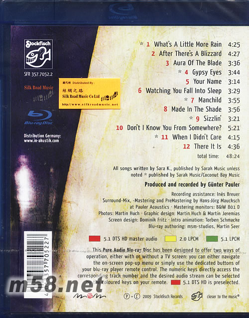 價格為估,以實到貨為準! 于陰暗中的創作MADE IN SHADE 藍光CD(m58.net) 莎拉K首張藍光純音盤 [于陰暗中的創作] 〈老虎魚〉藍光純音盤系列(pure audio blue-ray disc)打響頭炮之作一殿堂級發燒天后莎拉,全K(shara.K)于陰暗處的創作(made in th shade),全新版本以24 bit,88.2KHZ絕美呈現,達至最高境界的音效,人聲與吉他聲更為立體剔透!以嶄新科技首創簡化模式選播歌曲,不需要透過電視從菜單中選取歌曲,發燒界先驅〈老虎魚〉率領迷到最高科技的音效領域,帶來前所未有的音樂享受,最新載體試機!