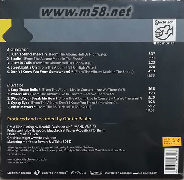 雙面情人 In The Groove 180g 33RPM LP 老虎魚 黑膠(m58.net) 最頂級的錄音 最發燒的人聲 Stockfisch唱片錄音採用二十八位元的類比數位轉換器、NAGRA-D等超發燒設備錄製,並以B&W NAUTILUS 801進行鑑聽。 黑膠唱片有兩面,而以黑膠唱片呈現的這張莎拉K.精選也有完全不同的兩面。A面是錄音室作品集,在錄音室樂手高超技巧的襯托下,五首創作歌曲以不同的樂器如豎琴、手風琴、弦樂四重奏等搭配,展現出截然不同的風貌。B面是她的現場演唱,可以聽到這位來自德州的女歌手,以她自學的獨特四弦吉他伴奏和她的歌聲貫穿全場。從這些歌曲中可聽出莎拉K.是位現場演奏、演唱技巧高超的一流歌手,僅以一把或兩把吉他伴奏,竟可以展現出極大的起伏與動態,震撼力十足。兩張錄音室專輯、三張現場專輯的最精華,全部包括在這張黑膠唱片的十首歌曲中。莎拉K.已經決定退休,而她最重要的搭檔吉他手克利斯瓊斯也已經過世,這張唱片可說是他們的絕響。透過180克黑膠優異的音質,老虎魚出品的招牌特色如美妙的吉他音色、真實的人聲與溫暖一如現場的氛圍,帶我們享受音樂與音響最高境界的美好。