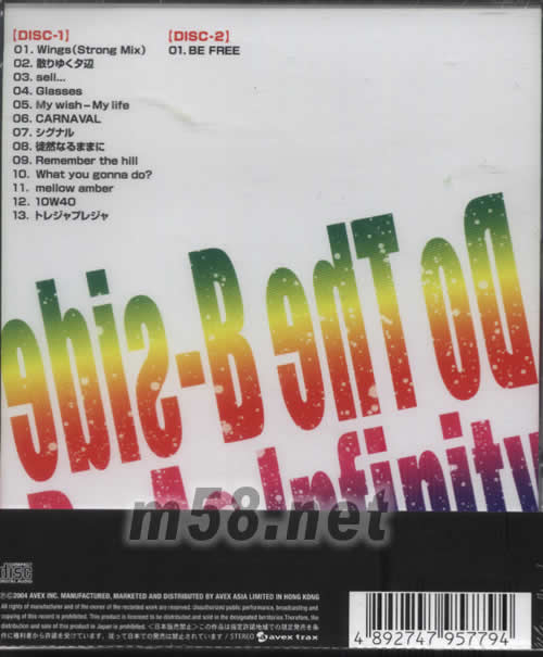 無限完美 B面精選 (海外版)(m58.net) 探索DO AS INFINITY另一面的(B-SIDE)入門精選專輯! 由1999年到2003年 所發表過的作呂嘗中 精心收錄名曲及未發表歌曲共13首! 初回版CD2 DISC 2收錄新曲[BE FREE]! 附中文歌詞