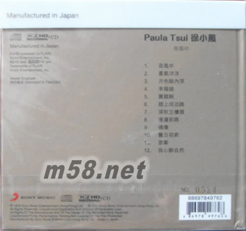 夜風中(SONY K2HD系列)(2017SONY 特價系列K2HD)專輯背面圖片