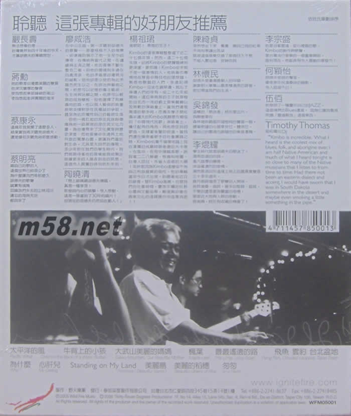 匆匆 KIMBO IN A FLASH 臺灣精裝版(m58.net) 他是臺灣本土音樂的靈魂人物。 他的聲音充滿深厚情感和無拘無束,有著渾厚的生命力和對自然的虔誠。他出專輯不多,資格卻老,上世紀七十年代,臺灣第一場民歌演唱會,他以多首原創(chuàng)歌曲一鳴驚人,如《美麗島》、《鄉(xiāng)愁四韻》、《看海的歌》…等,那是臺灣,第一次自己唱自己的歌。從此,臺灣為開啟了一股80年代的“民歌運動”熱潮。 九十年代之后,直到現(xiàn)在,他一直致力于促進臺灣、兩岸與國際的原著民歌復興活動,專注于原住民音樂之文藝復興運動,在世界各地的演唱會中傳唱自己的母語歌謠,并將原住民的歌聲帶到各的部落與世界性的音樂聚會之中。 他是臺灣的原著民,足跡卻遍布世界各地,以現(xiàn)場演唱用母語傳唱自己創(chuàng)作的歌,膾炙人口,深入民心。 他創(chuàng)作及傳播著臺灣本土的藍調(diào),他那粗粗的手指、黑黑的膚色,散發(fā)著泥士氣息的笑臉,早已成了偉大的音樂“商標”,深深的刻入民族文化的史冊。