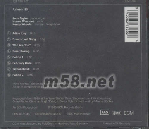 價格為估,以實(shí)到貨為準(zhǔn)! AZIMUTH 85(m58.net) JOHN TAYLOR :PIANO,ORGAN NORMA WINSTONE: VOCAL KENNY WHEELER: TTUMPET,F(xiàn)LUEGELHORN