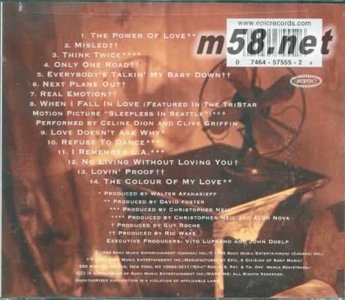 1.The Power of Love 2. Misled 3. Think Twice 4. Only One Road 5. Everybody's Talkin' My Baby Down 6. Next Plane Out 7. Real Emotion 8. When I Fall in Love 9. Love Doesn't Ask Why 10. Refuse to Dance 11. I Remember L.A. 12. No Living Without Loving You 13. Lovin' Proof 14. Colour of My Love