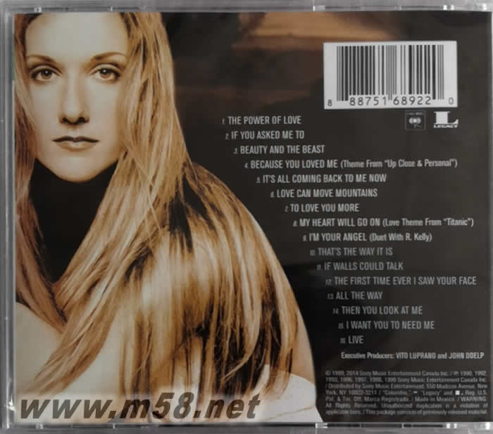 01. THE POWER OF LOVE 02. BEAUTY AND THE BEAST 03. BECAUSE YOU LOVED ME(Theme From "Up Close & Personal") 04. IT S ALL COMING BACK TO ME NOW 05. IMMORTALITY 06. TO LOVE YOU MORE 07. MY HEART WILL GO ON(Love Theme From "Titanic") 08. BE THE MAN 09. I M YOUR ANGEL(duet with R.Kelly) 10. THAT S THE WAY IT IS 11. IF WALLS COULD TALK 12. THE FIRST TIME EVER I SAW YOUR FACE 13. ALL THE WAY 14. THEN YOU LOOK AT ME 15. I WANT YOU TO NEED ME 16. LIVE